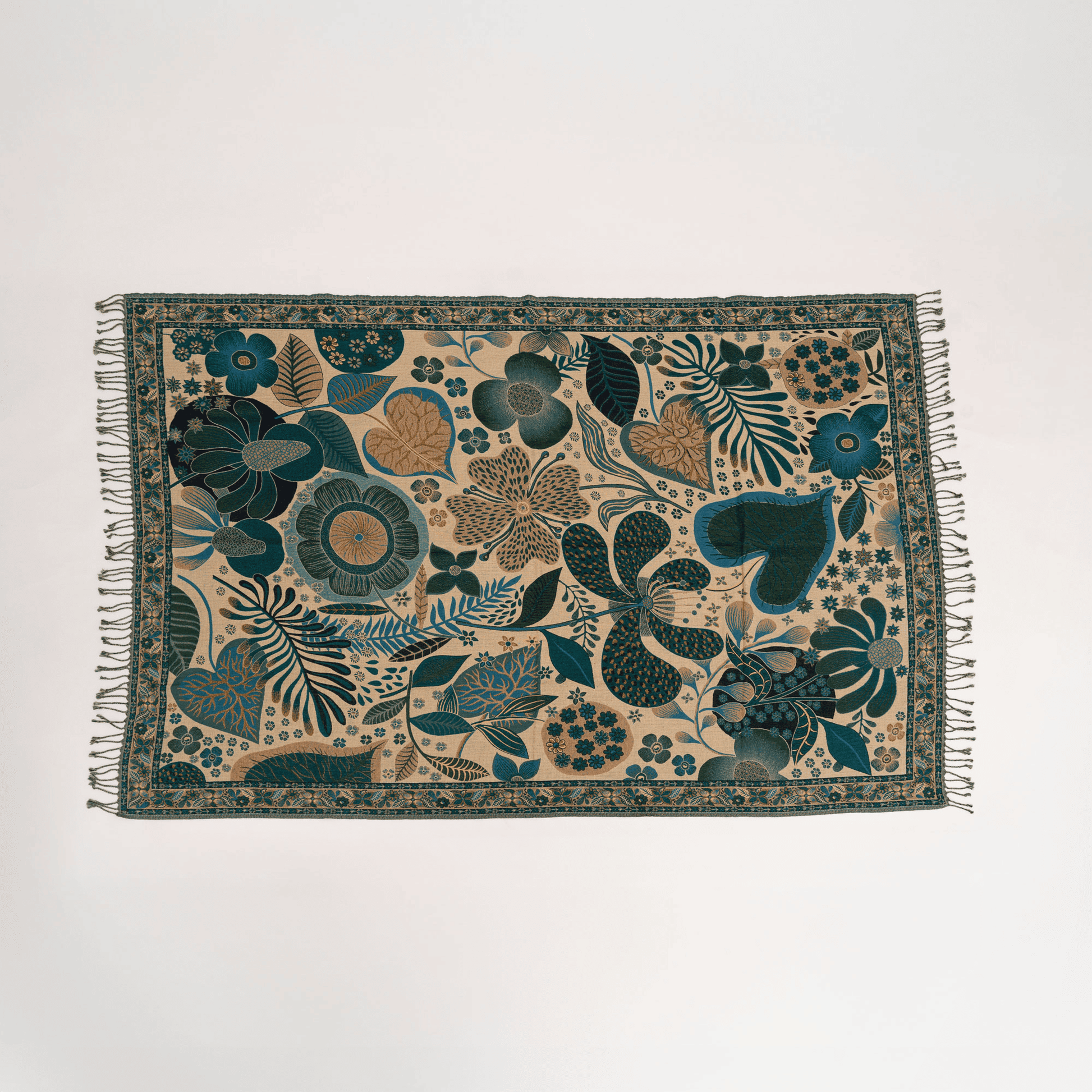 Emerald Blossom is a celebration of nature’s elegance — a harmonious blend of deep greens and delicate blooms that bring serenity and sophistication to your space. This multicolor cotton wool throw blanket is designed to elevate your interiors with a lush botanical aesthetic and timeless charm. Woven from a premium cotton wool blend, it offers a soft, breathable, and cozy feel, making it perfect for all seasons. Whether styled over a sofa, armchair, or bed, this emerald green floral throw enhances living room and bedroom decor with a refined, nature-inspired touch.