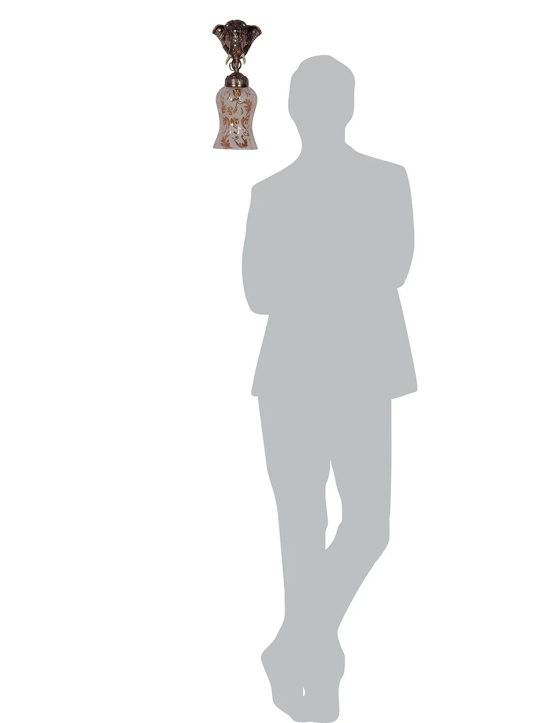 This aluminium wall sconce can impress anyone with its creative design and eye-catching colors. It features a cast aluminium molded elephant sculpted with decorative red beads in the bronze finish attached with an amber yellow crackle glass shade. This rustic wall light fits well in any classic decor. The frosted glass shade emits an elegant and radiant glow that brightens your place and is an extraordinary addition to any corner of your home.