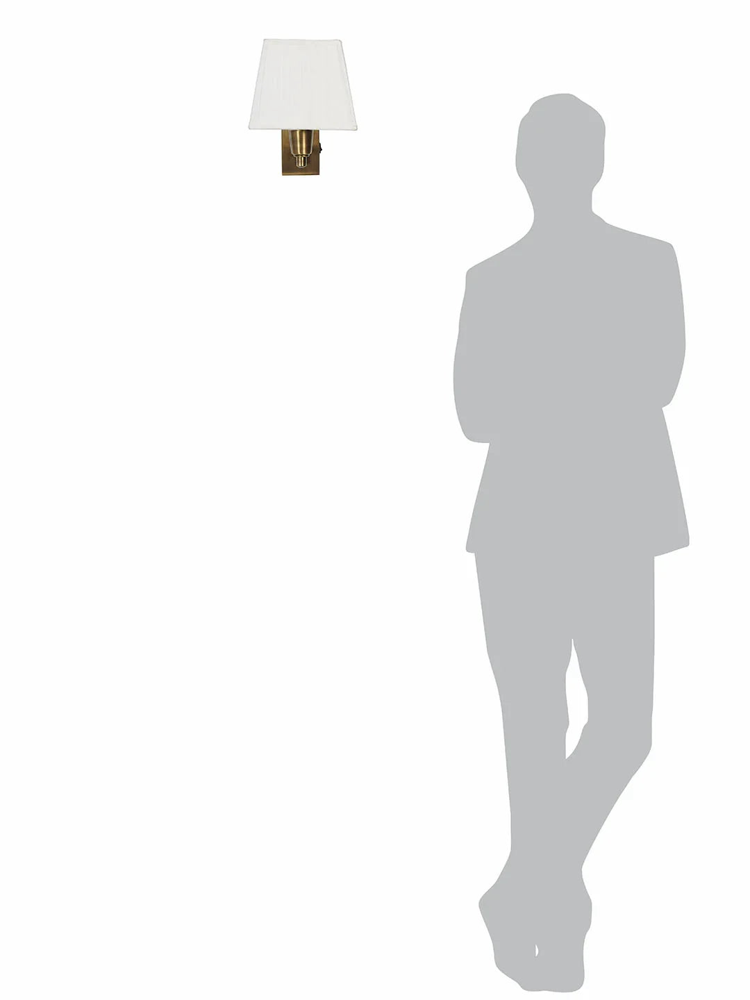 Classic yet functional, this wall light with its single movable arm makes an ideal bedside reading lamp without taking up any tablespace. The fixture comes with an easy to reach switch and a square white pleated fabric shade.