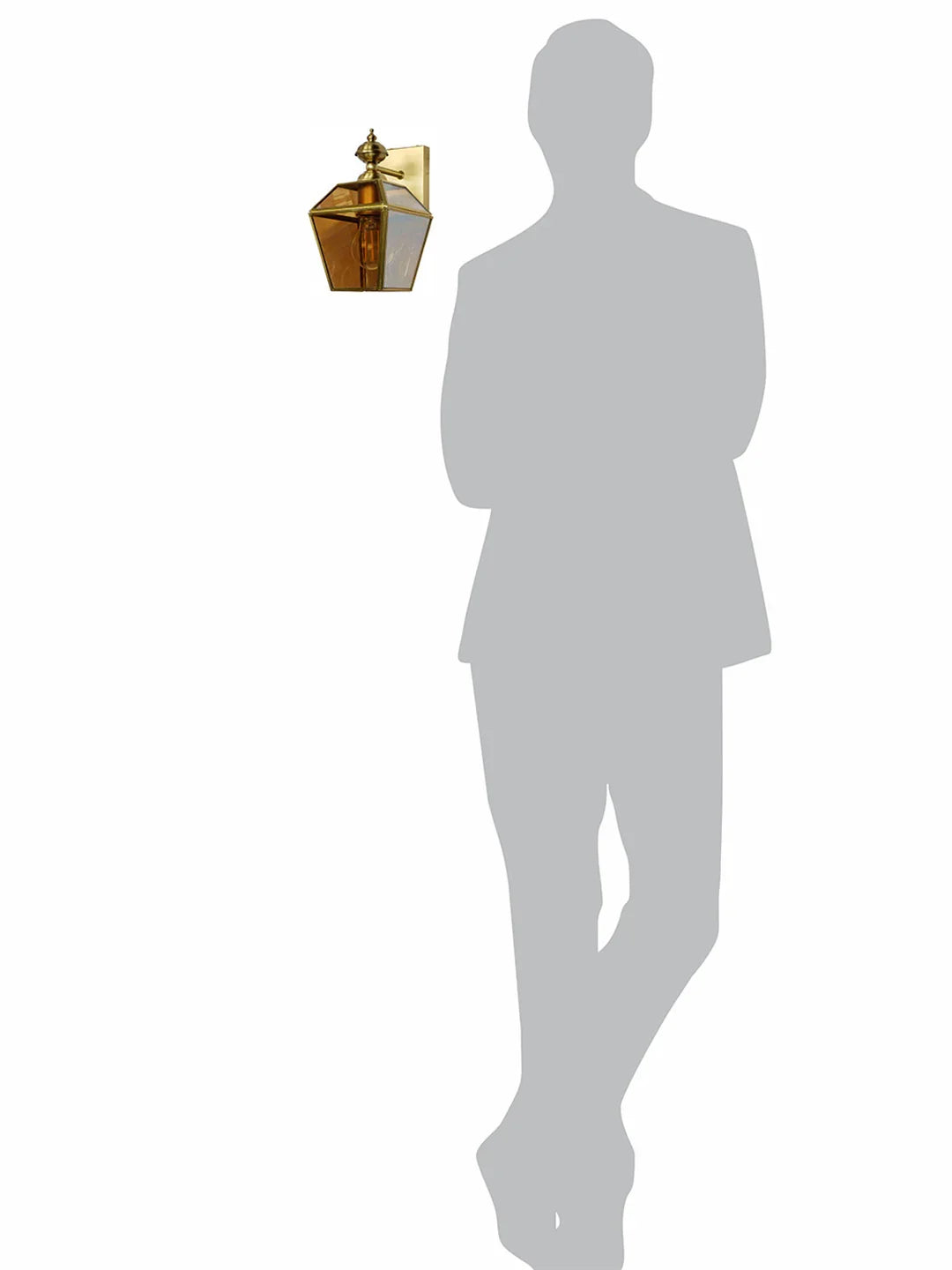 Add a touch of classic Victorian elegance to your home with this beautiful brass wall sconce. The fixture features a unique trapezoidal glass shade encased in an antique brass frame. The clear glass allows for maximum light output, creating a warm and inviting ambiance. Perfect for hallways, entryways, or living rooms.