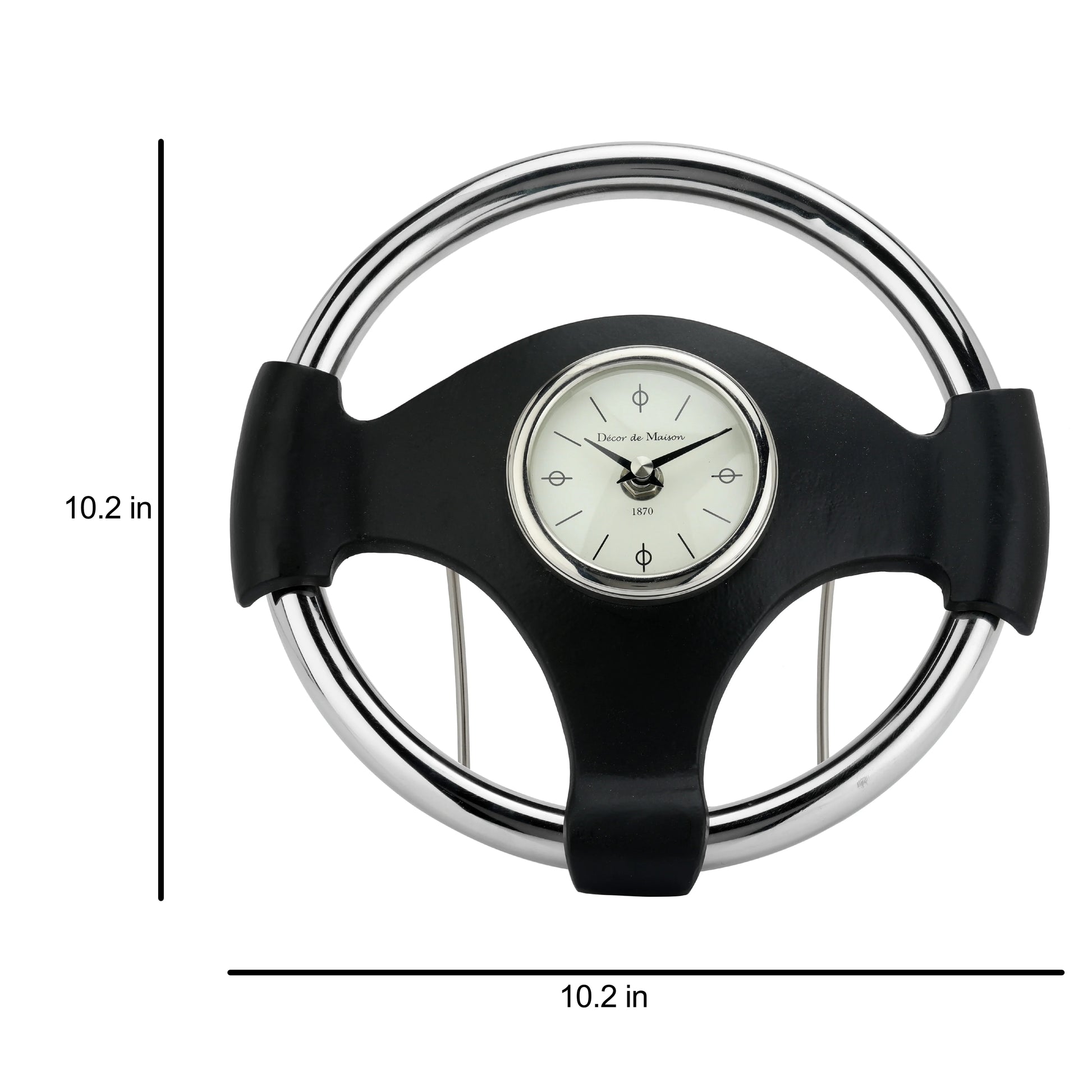 Introducing the Wheel Steel Clock, a perfect blend of functionality and style. This premium wheel clock not only serves its conventional purpose of timekeeping but also adds a unique, stylish touch to any space. Designed with a steering wheel clock motif, it brings a hint of vintage charm while offering modern precision. The luxury steel clock is compact and versatile, making it easy to place on desks, shelves, or mantels. Ideal for both home and office decor, this vintage clock brings sophistication and elegance, effortlessly elevating your surroundings with its timeless design and sleek finish.