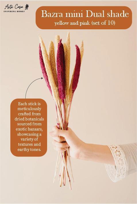 Enhance your living space with the rustic charm of our Dried Bazar Sticks, perfect for adding a touch of natural elegance to any room. Each stick is meticulously crafted from dried botanicals sourced from exotic bazaars, showcasing a variety of textures and earthy tones. Versatile and stylish, these sticks can be arranged in a vase or displayed as standalone decor pieces, bringing a sense of artisanal craftsmanship and global flair to your home. Whether used as a centerpiece or accentuating a mantle, our Dried Bazar Sticks evoke a sense of wanderlust and timeless beauty.