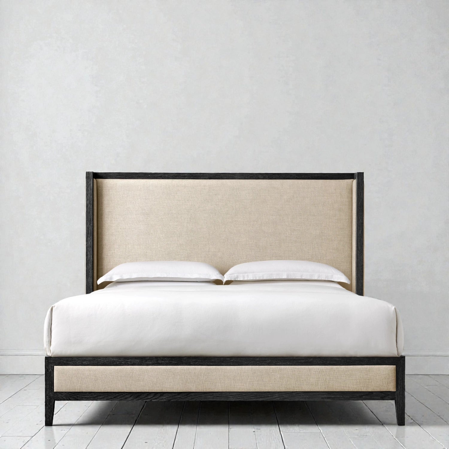 Shell Solid Teak Wood And Fabric Upholstered King Size Bed