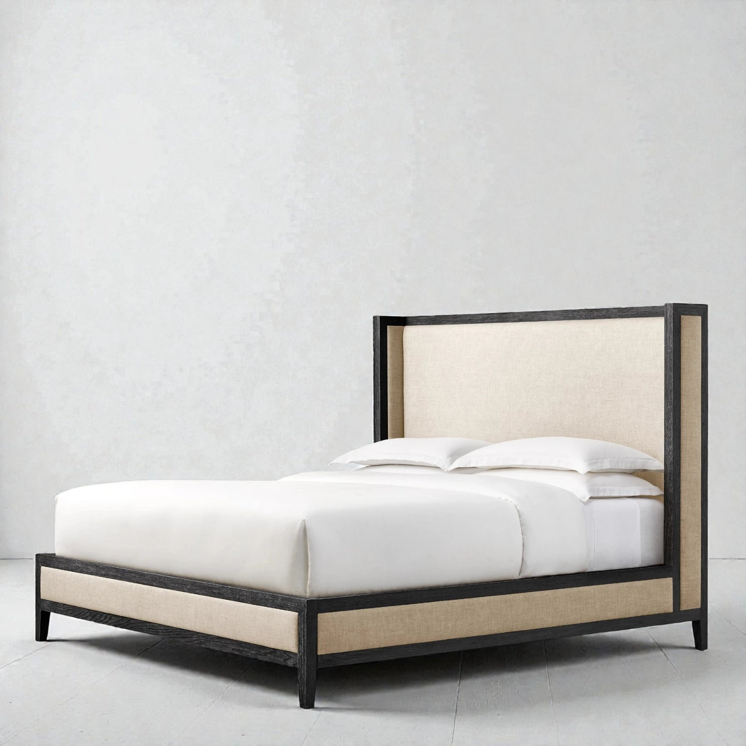 SHELL Solid Teak Wood King Size Bed combines graceful design with enduring strength. Crafted from premium solid teak wood and accented with fabric-upholstered detailing, it brings warmth, comfort, and refined elegance to sophisticated bedroom spaces.