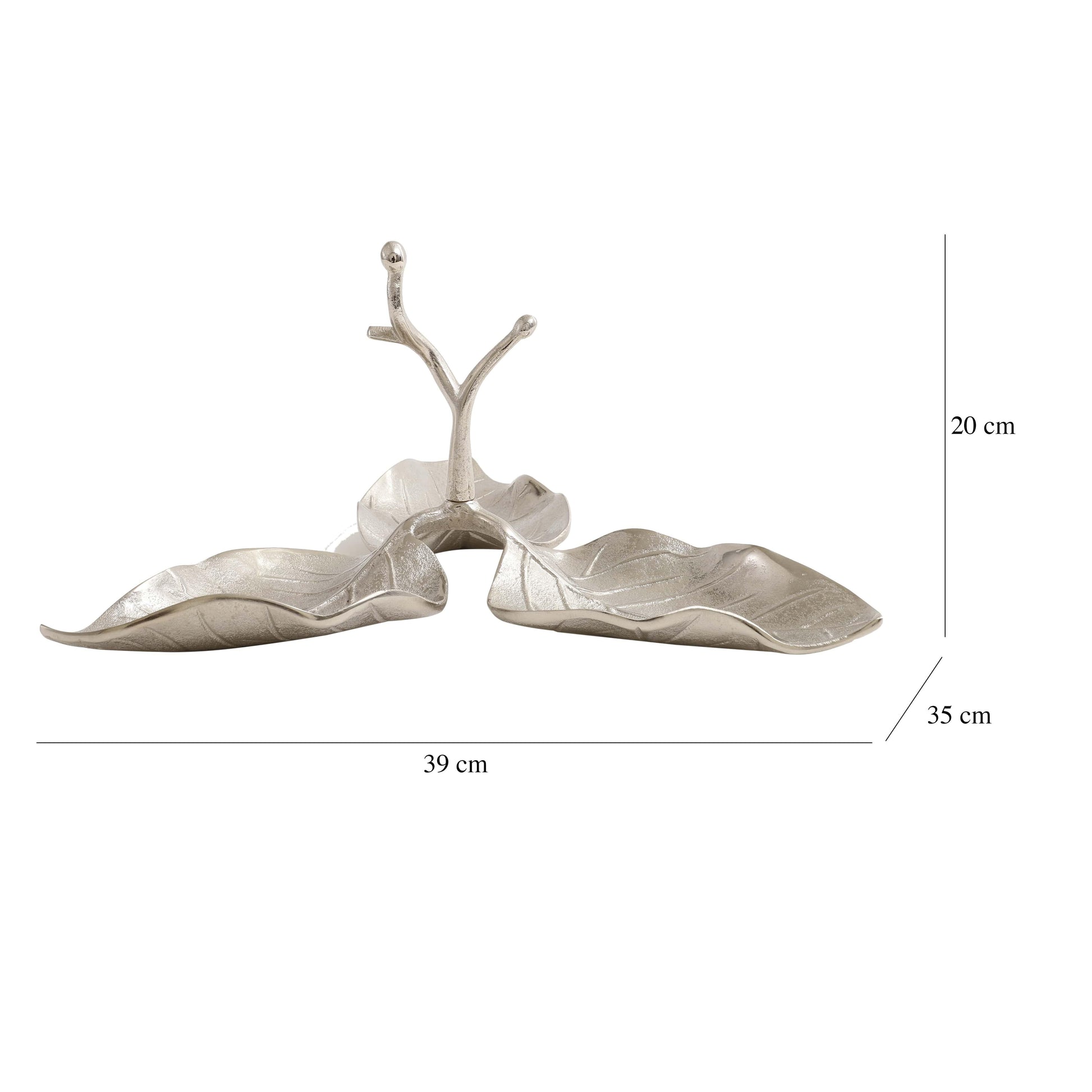 The 3 Decorative Silver Leaf Platter—crafted with a delicate leaf motif and shimmering silver surface, this platter creates a refined and eye-catching centerpiece.
