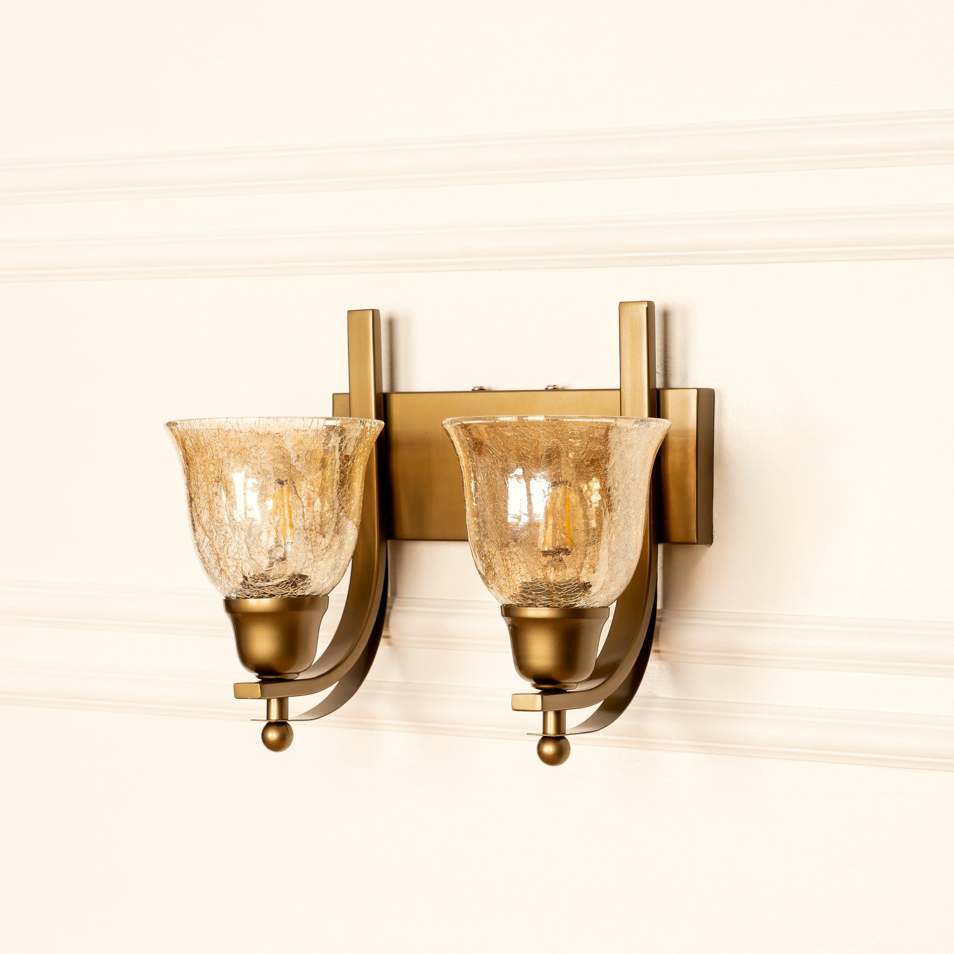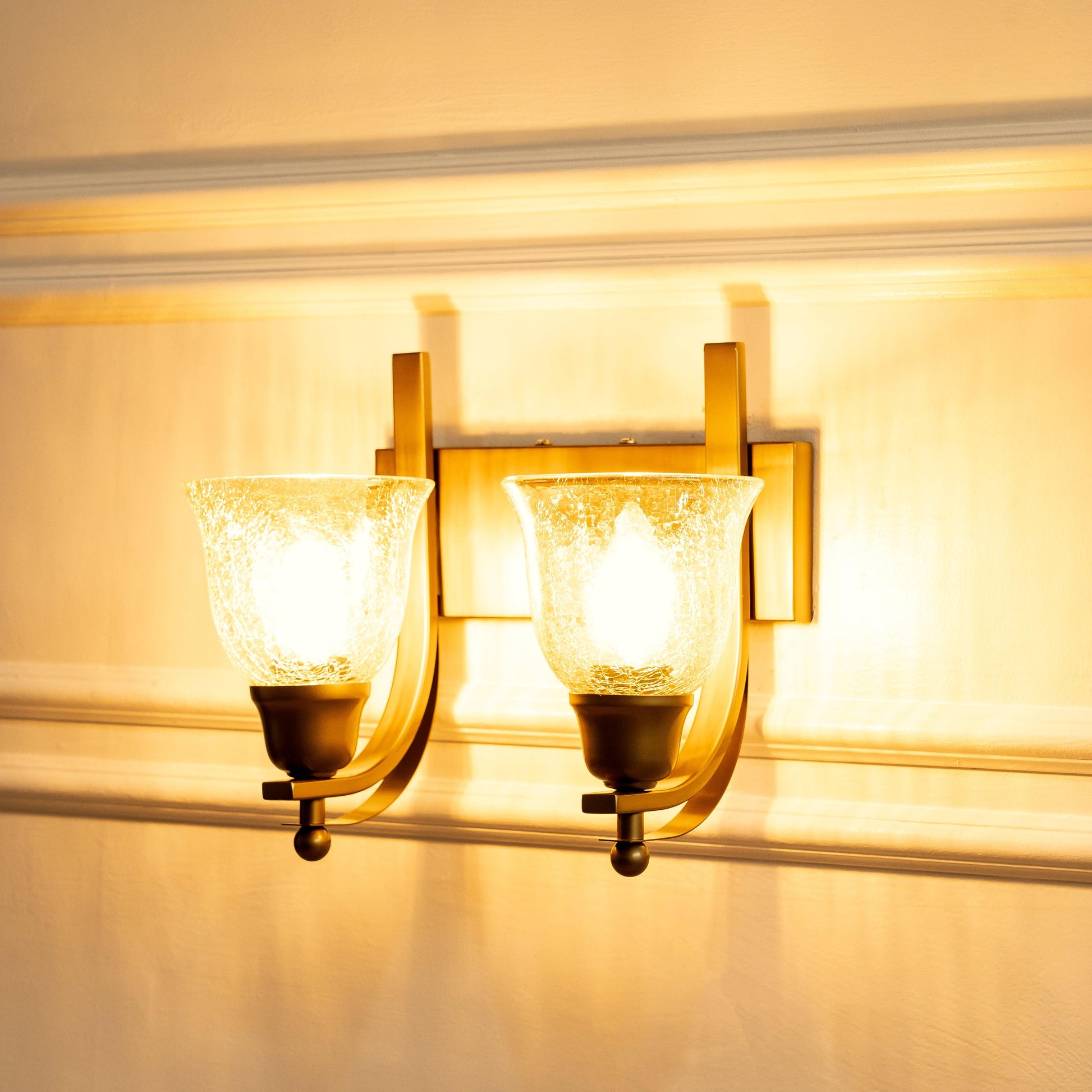 - This wall lamp comes with two cup crackled glass golden luster lampshades.