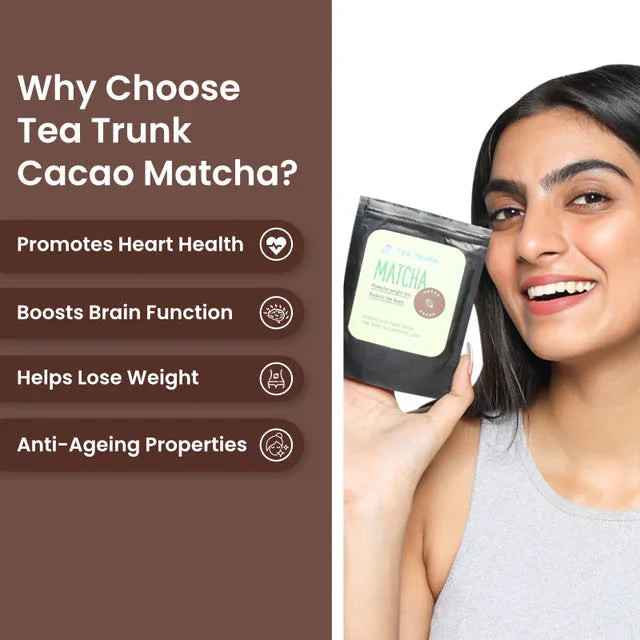 Experience the ultimate superfood blend with Cacao Matcha – where premium ceremonial grade matcha from Japan's Nishio region meets rich, indulgent raw cacao. Packed with antioxidants, vitamins, and minerals, this blend offers 10 times the health benefits of regular green tea. Enjoy a natural energy boost, improved metabolism, and enhanced brain function in every cup of this delicious, creamy tea.