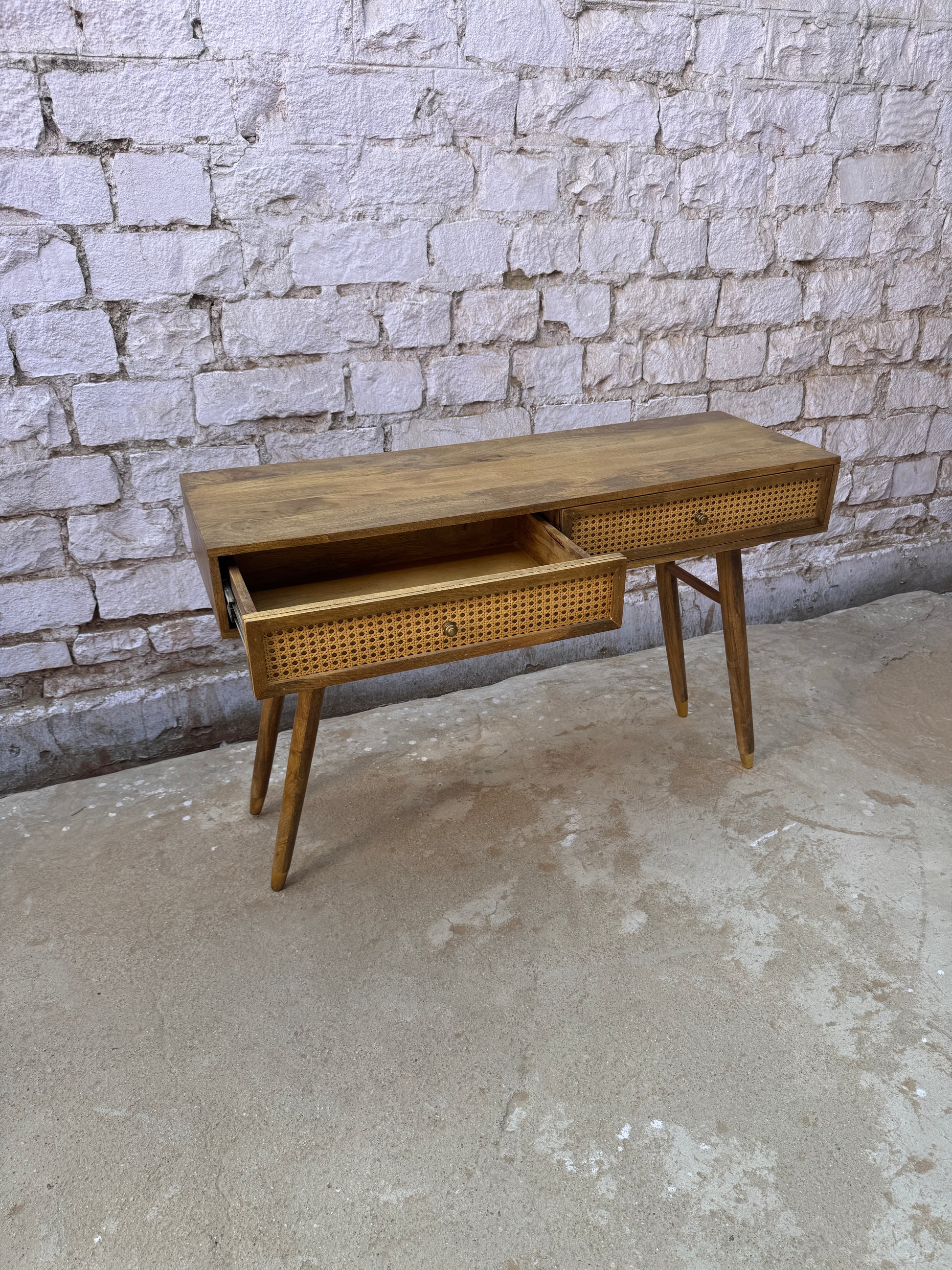 Console with 2 drawers with caning on the fronts.