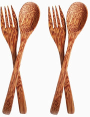 2 Pcs Coconut wood spoons + 2 Pcs coconut wood forks
