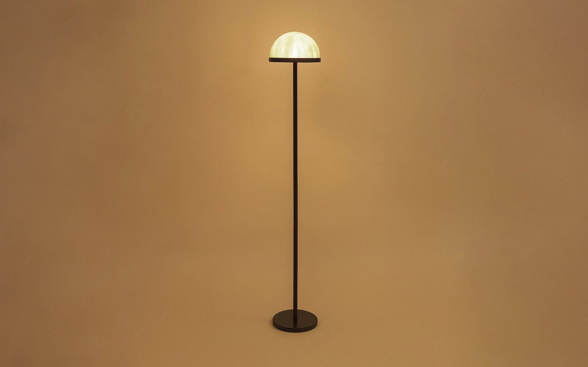Elevated yet grounded, the Crater Floor Lamp features a shallow dome shade that glows with warm texture. Ideal for corners, this piece adds quiet strength to minimalist rooms.
