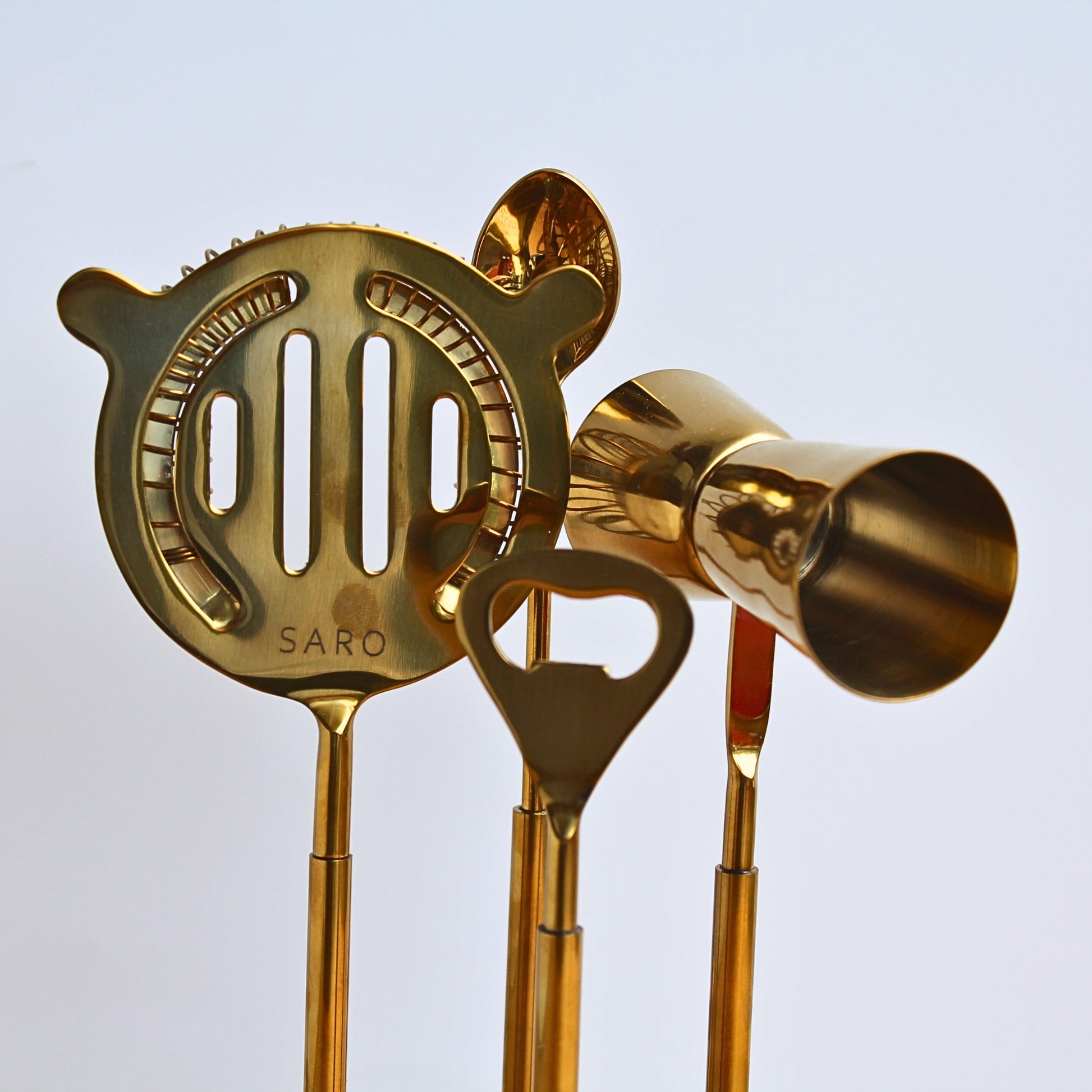 Dimensions: Tools- Measurer: 8.5 x 20cm, Spoon: 2.5 x 21.5cm, Openor: 4 x 16.5cm, Strainer: 8 x 20cm, BAR BASE: 12 X 12 X 6cm