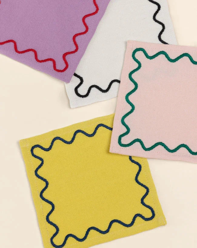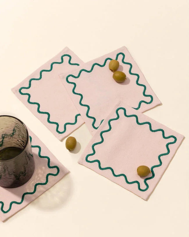 Made from 100% cotton, they work just as beautifully as petite napkins or as eye-catching coasters under drinks, candles, or snacks. Small details, big mood.
