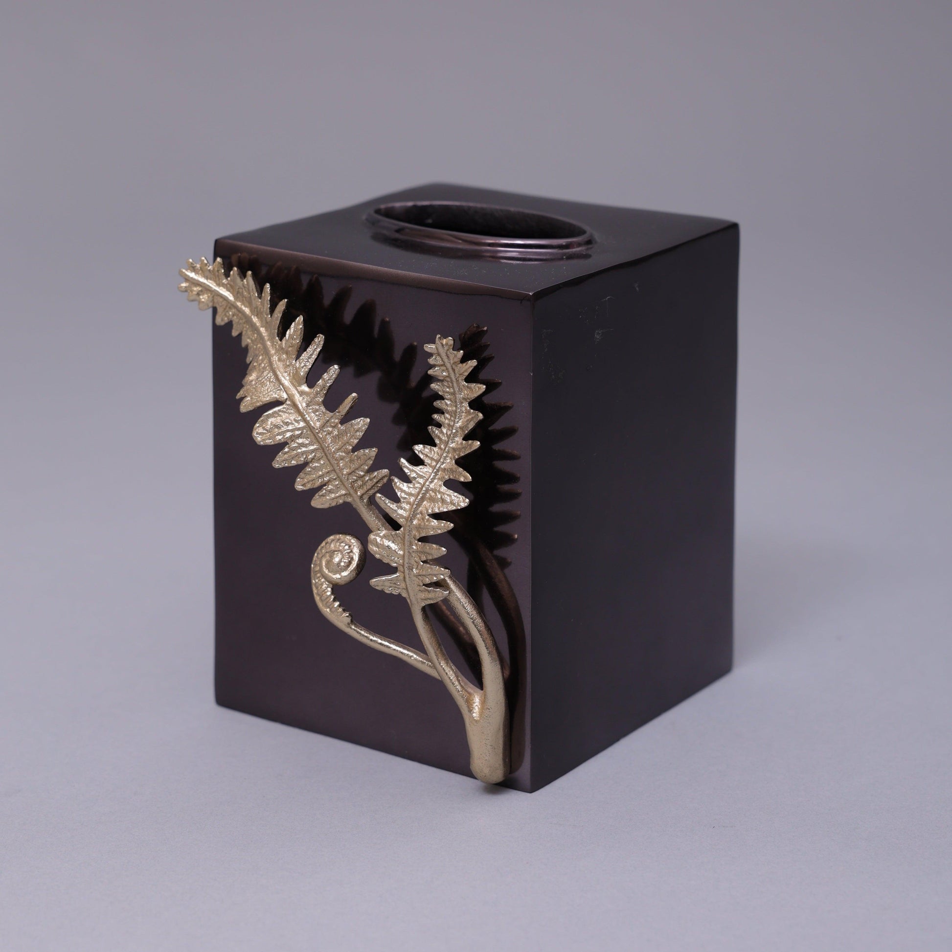 The design is inspired by the delicate beauty of fern leaves, with intricate detailing that enhances its overall appeal. Perfect for any space in your home, the fern noir tissue holder not only serves as a practical accessory but also as a statement piece that reflects your impeccable taste. Experience the perfect fusion of functionality and high-end design with the fern noir tissue holder, an essential addition to your home decor.