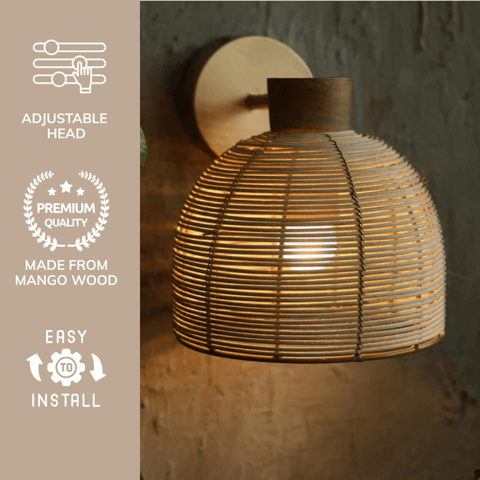 Buy Wall Light - Henka Natural Cane & Iron Finish Scandinavian Wall Lamp for Home Decor by Orange Tree on IKIRU online store