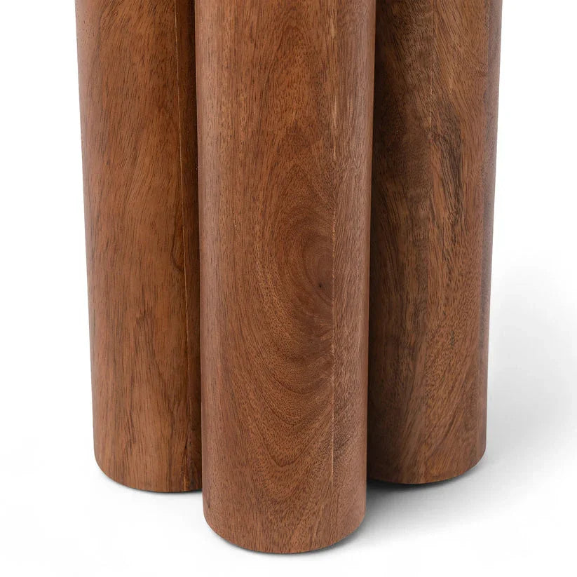 Elevate your living space with this handcrafted Isla solid wood round side table featuring a unique cylindrical base design. Made from premium hardwood with a rich natural finish, this modern accent table blends timeless craftsmanship with minimalist elegance. Perfect for use as a sofa side table, nightstand, or decorative corner piece, it offers both durability and style. Ideal for contemporary, rustic, or mid-century interiors.