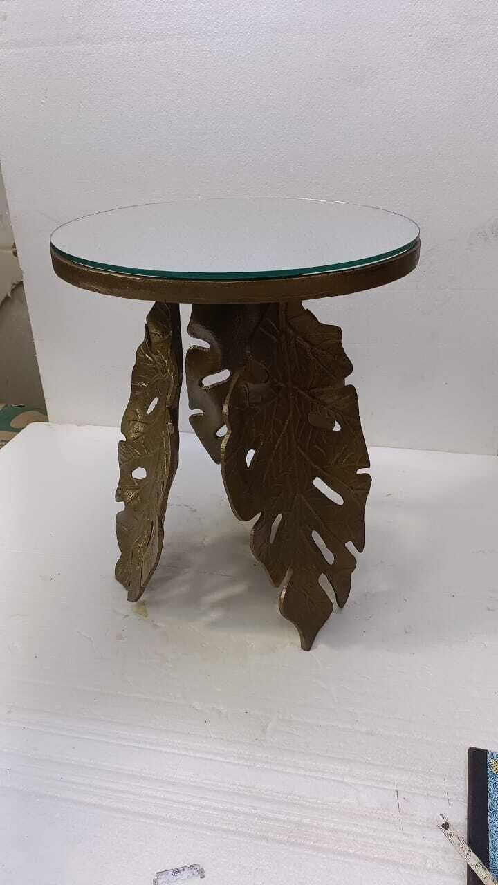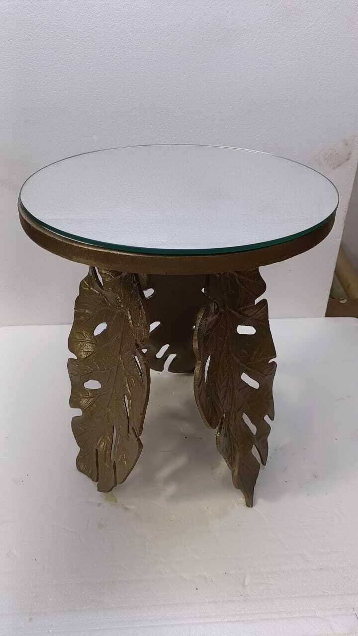 Add a touch of timeless style to your home with this accent side table / end table featuring a stunning antique brass finish. Perfect as a designer corner table, living room side table, or bedside table, this piece brings elegance and function to any space. Crafted with a reflective mirror top set in a durable metal casing, this small sofa side table or tea table offers a sophisticated surface to display decorative items, hold your coffee, or organize essentials. The standout feature is its unique leaf design base, which adds artistic charm and makes this mirror top side table a stylish focal point in any room.