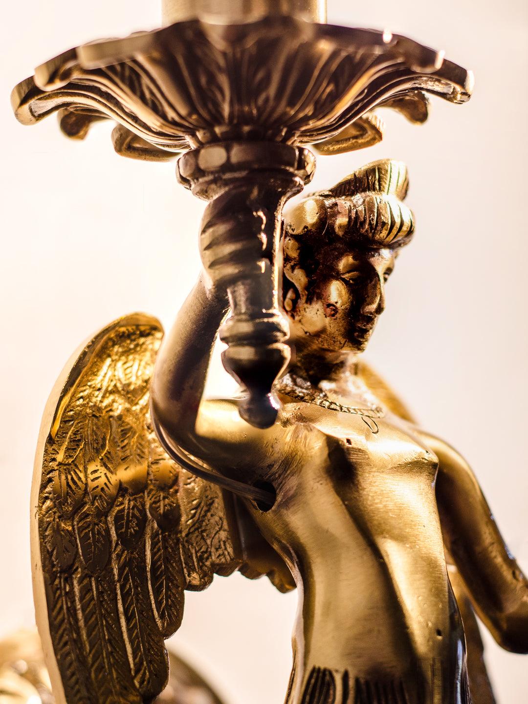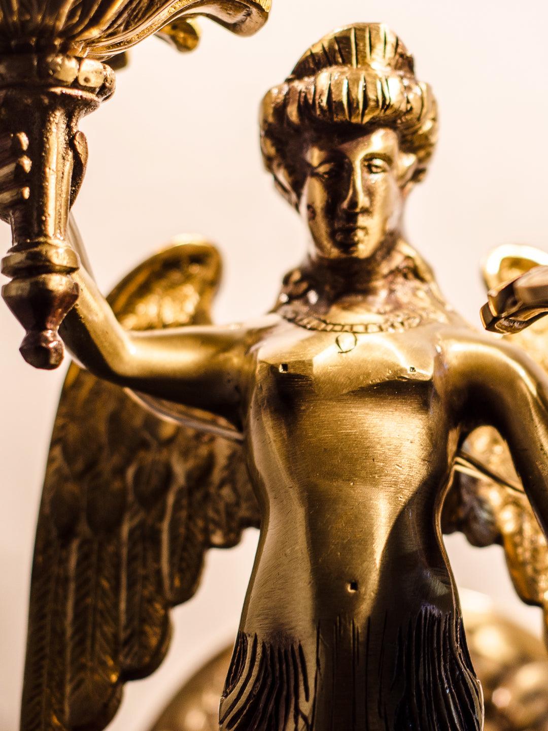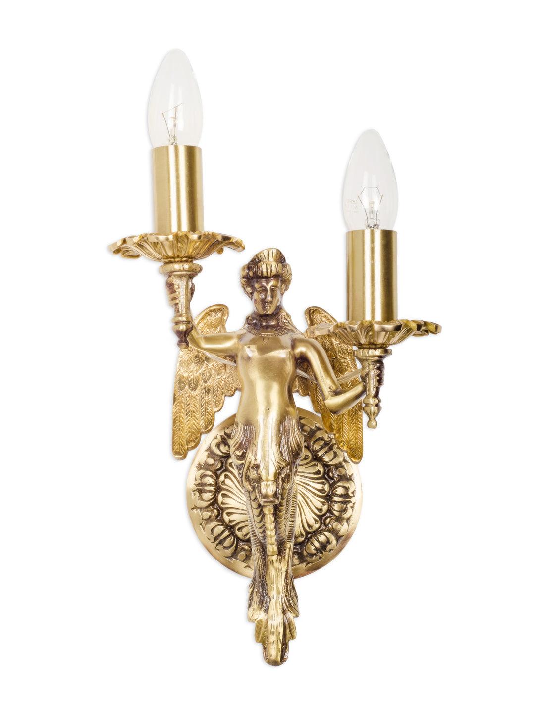 This mermaid inspired wall sconce from Fos collection offers both traditional as well as modern chic look.Winged mermaid in solid brass candelabra sconce, completely cast with polished and contrasting oxidized elements make this chandelier a thing of beauty.