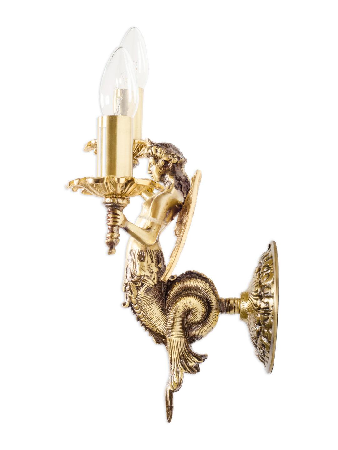 Mermaid cast brass wall sconce