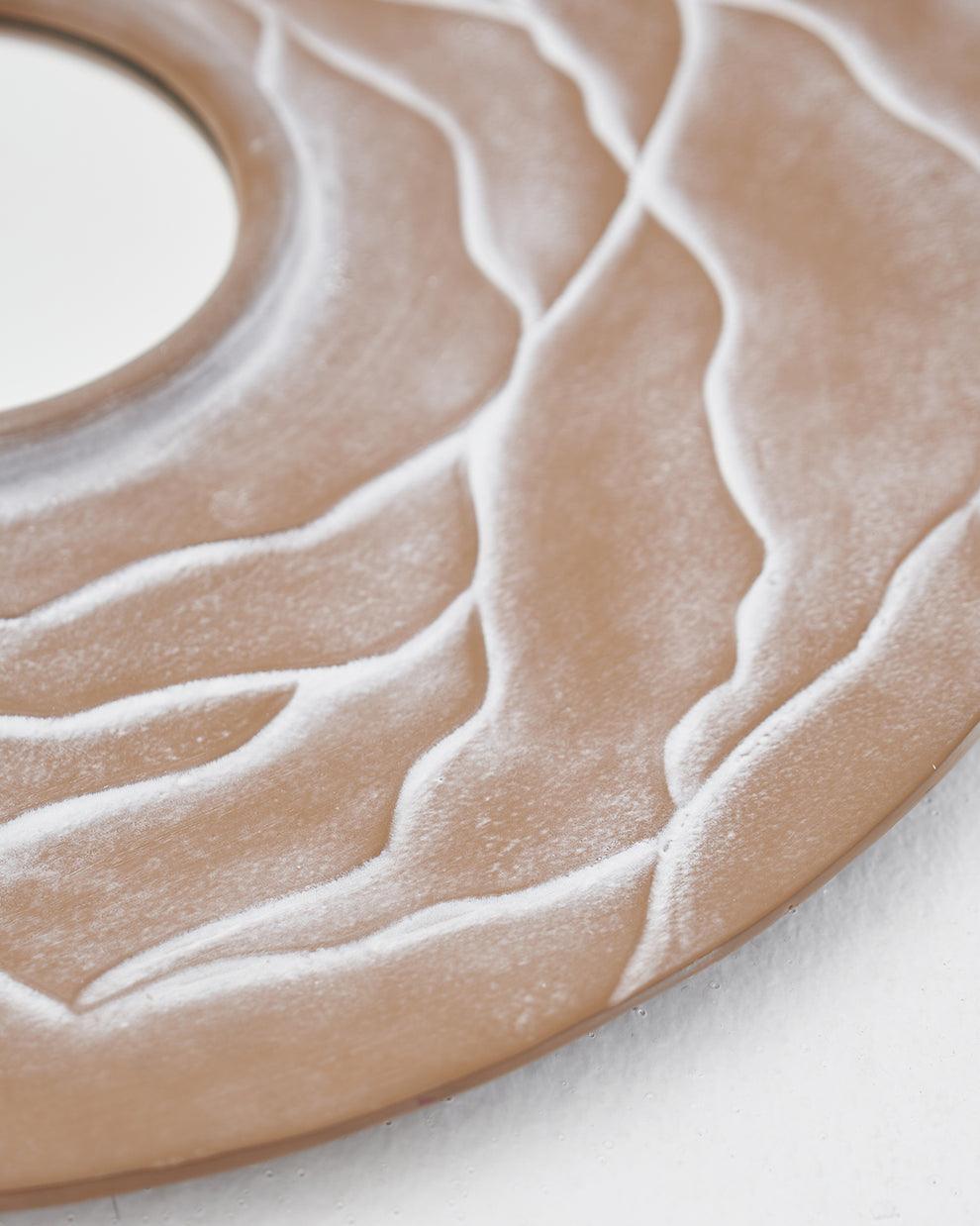 This stunning Orb wall Mirror adds both elegance and functionality to any room. With its wavy textured finish and hand-painted details, it doubles as a captivating piece of decorative wall mount mirror and timeless art. Perfect for enhancing your home, this elegant & vintage wall mirror for living room brings a touch of sophistication to your space. Its versatile design also makes it an ideal aesthetic wall mirror for office decor, creating a stylish focal point. Additionally, it serves as a perfect modern vanity mirror, reflecting your unique taste while brightening up your interiors with grace.
