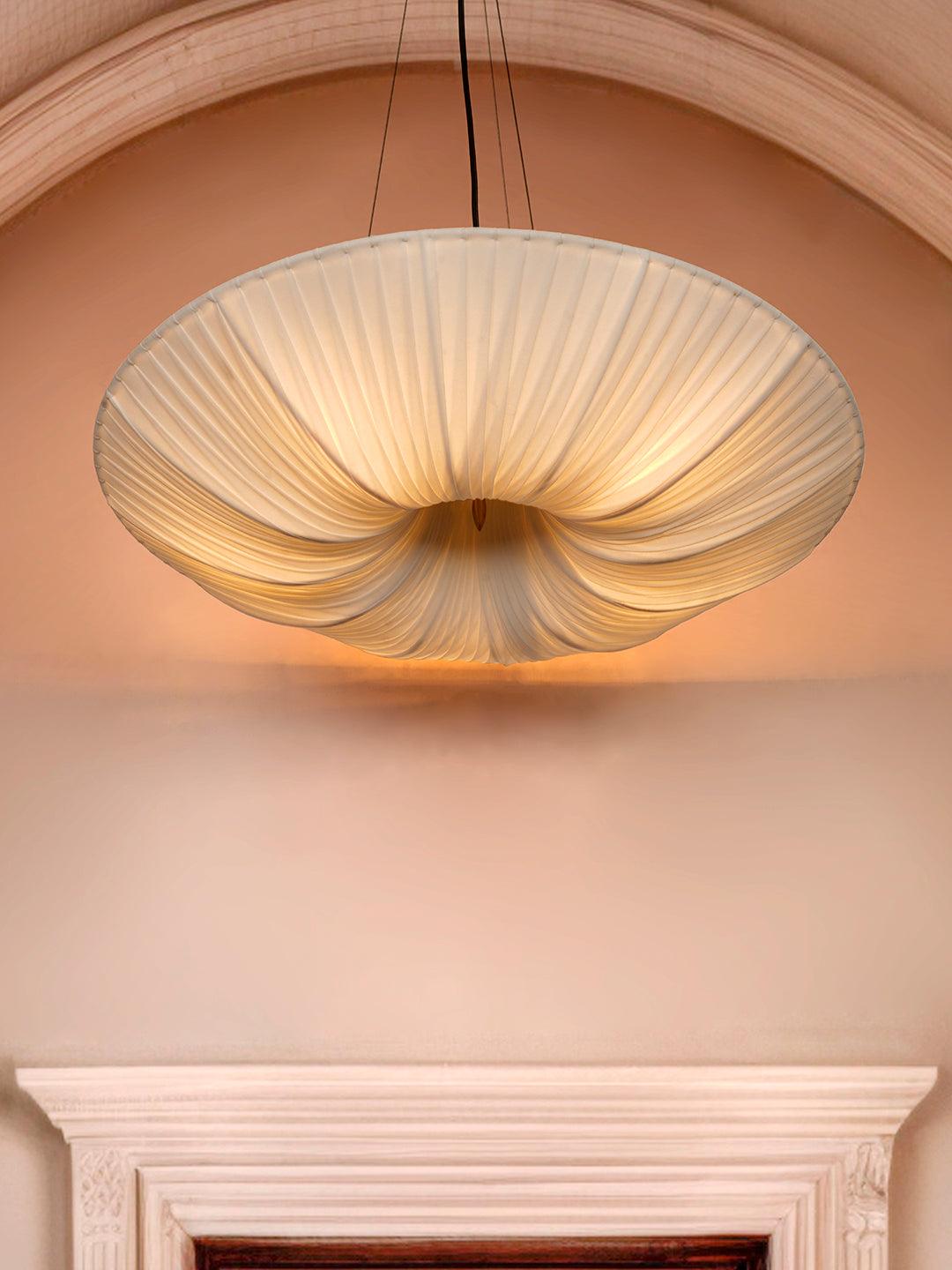 Add a touch of modern elegance to your home with the Pleated Fabric Saucer Pendant Light, a stunning piece that blends contemporary design with soft illumination. Featuring a saucer-shaped pleated fabric shade in a pristine white finish, it casts a warm, inviting glow perfect for dining rooms, living rooms, or bedrooms. Suspended gracefully from three clutch wires, this designer hanging light offers a sculptural silhouette that enhances any interior style. Crafted with care and attention to detail, it’s an ideal statement pendant light / hanging light that elevates your space with refined simplicity and timeless charm.