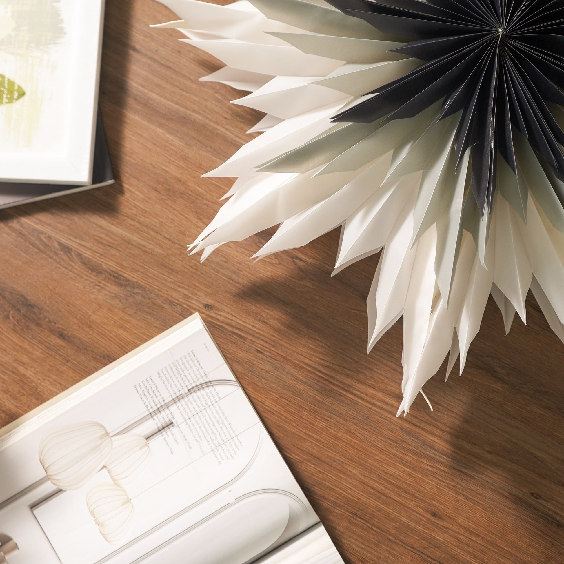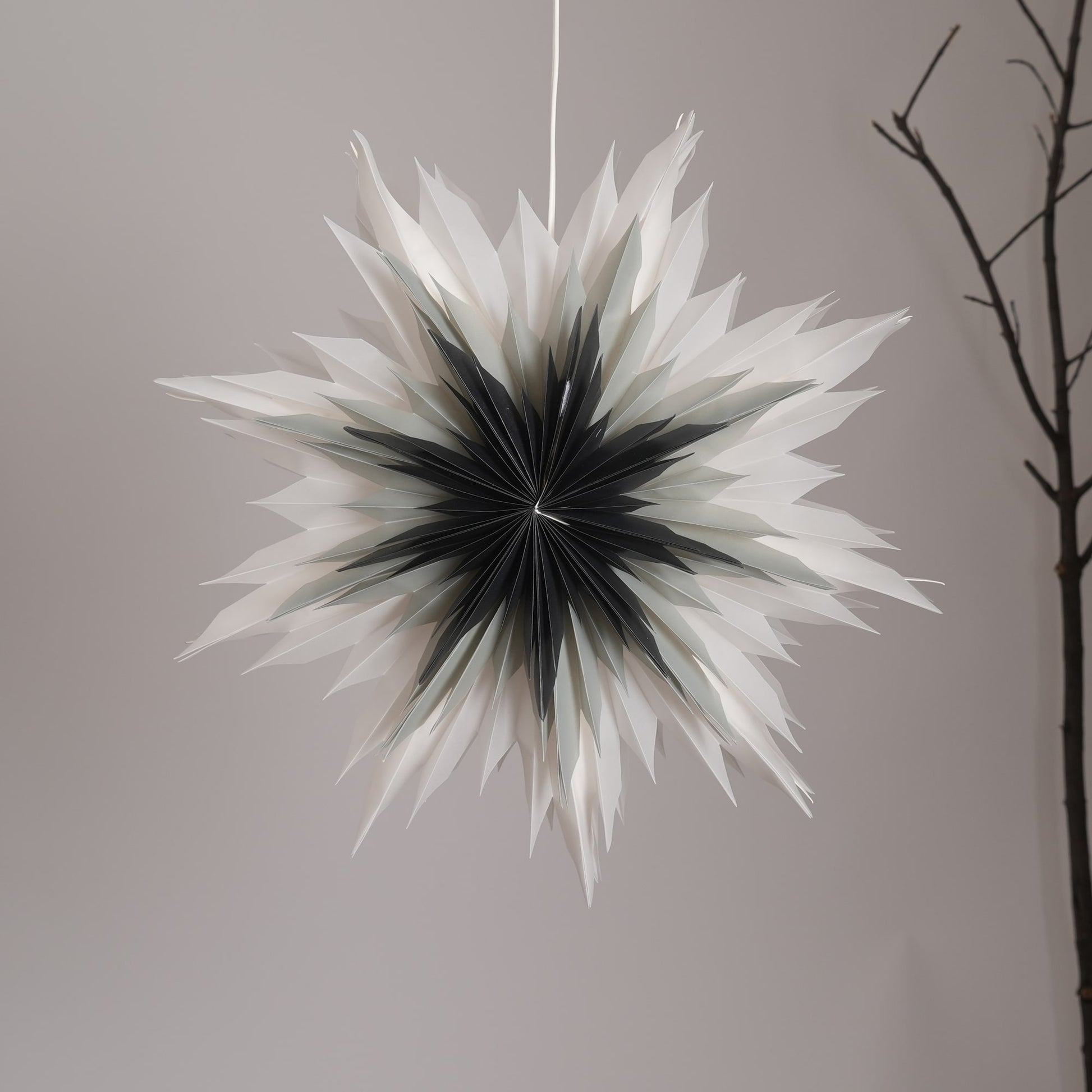 Introducing the FIG Living Snowflake Flower Festive Light, a beautifully handcrafted origami pendant light designed to elevate your festive décor. Available in two striking colours - Black and White - this artisanal lamp offers two distinct moods for your space.The White variant casts a soft, ethereal glow that brightens interiors with warmth and serenity -perfect for minimal, Scandinavian, or festive settings.