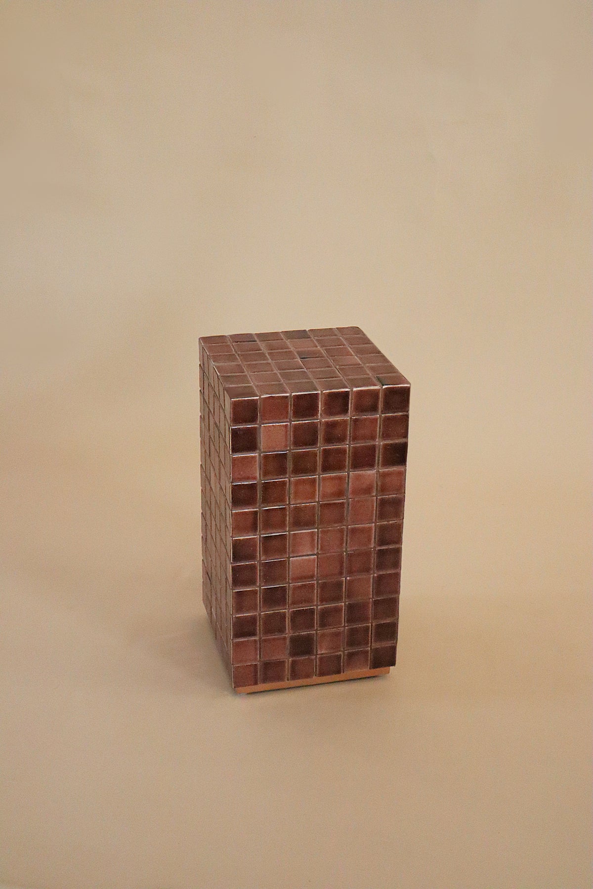 Tile-Clad End Table in Brick Red Design | Modern Cube Side Table for Living Room