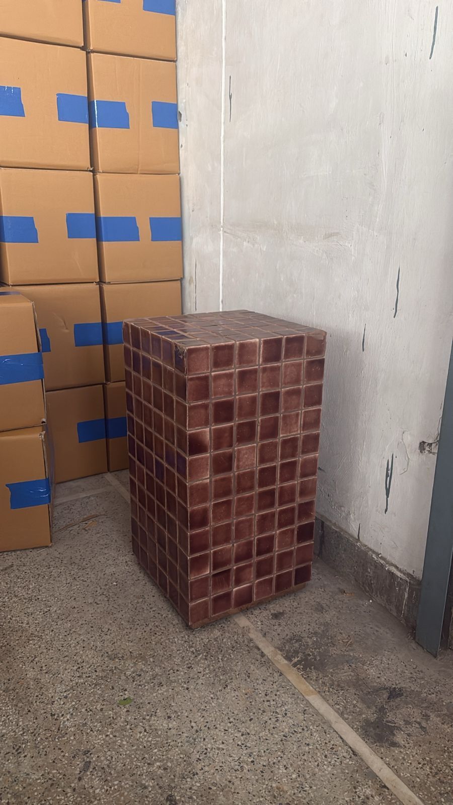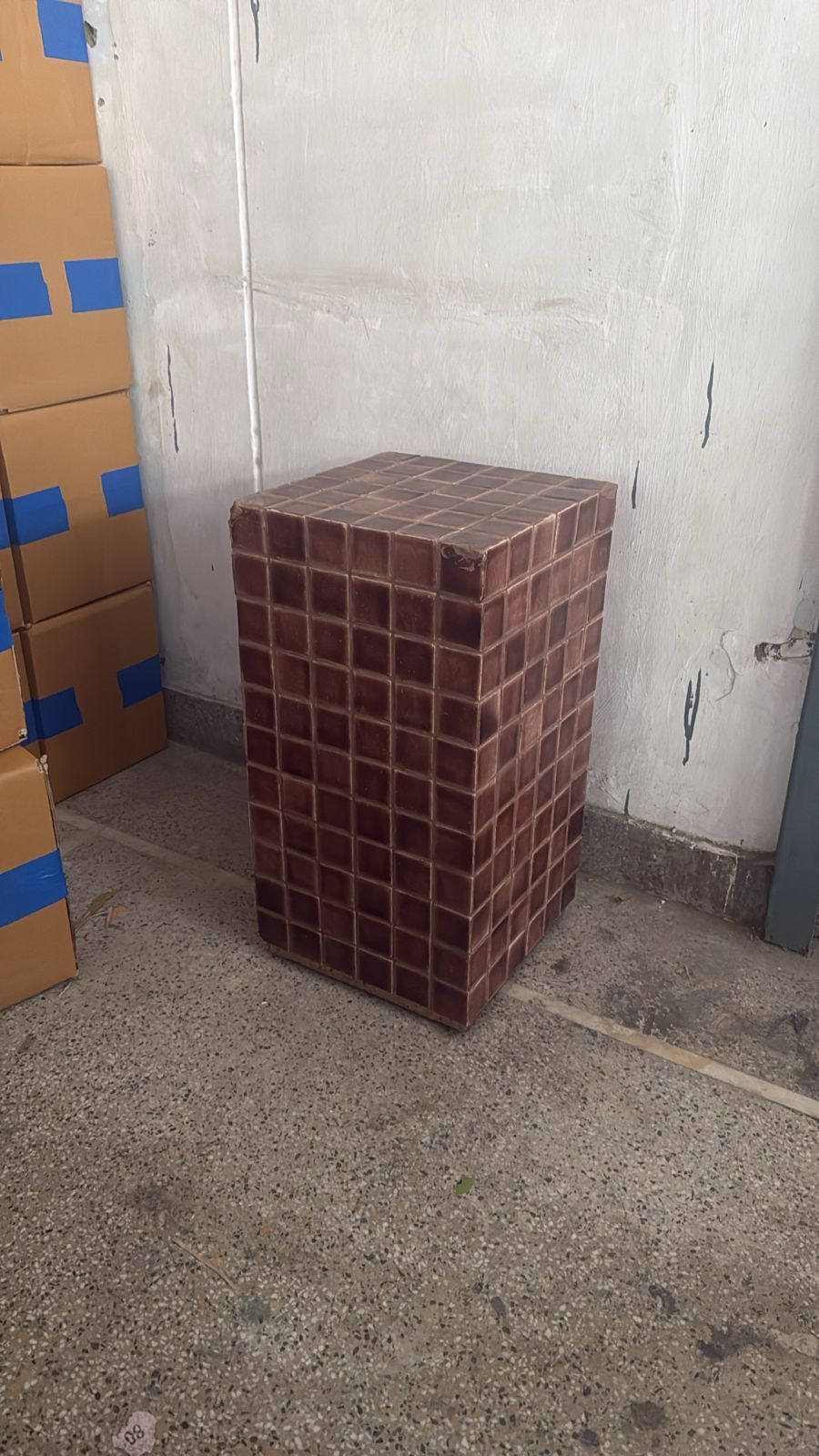 Designed for compact spaces with bold personality, this tile-clad side table combines artisanal texture with a clean geometric silhouette. Finished in a rich brick red tone, its minimalist cube-shaped form is crafted using tile, wood, and steel skirting, creating a distinctive accent that works beautifully beside sofas, beds, lounge chairs, or reading corners. The textured tiled surface adds handcrafted character, while the structured profile allows it to blend effortlessly into modern, contemporary, and eclectic interiors. Ideal as a small side table for living room, bedside use, or accent décor, this designer cube table delivers both function and statement styling in one compact piece.