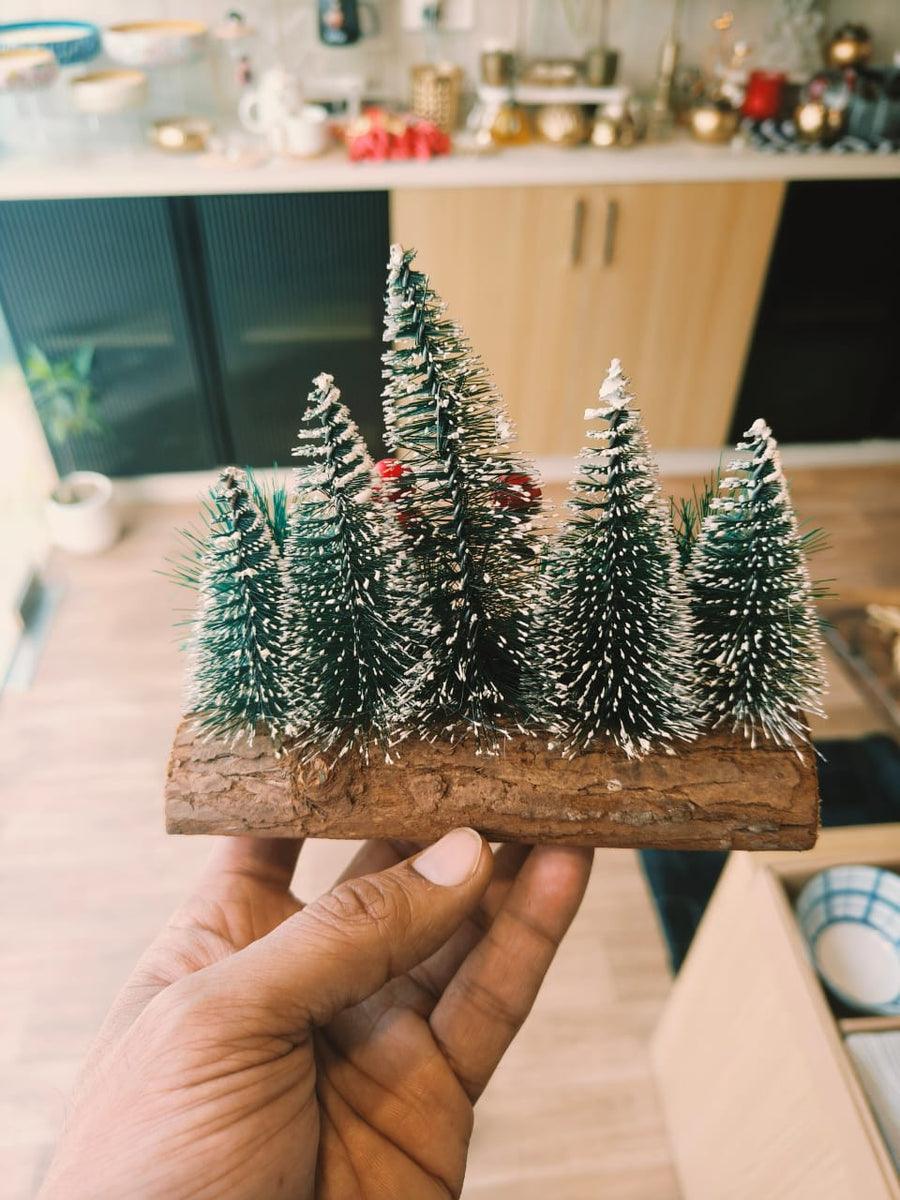 Trees Table Top Christmas Decor With Wooden Log Set | Christmas Tree Miniature Decor for Tables