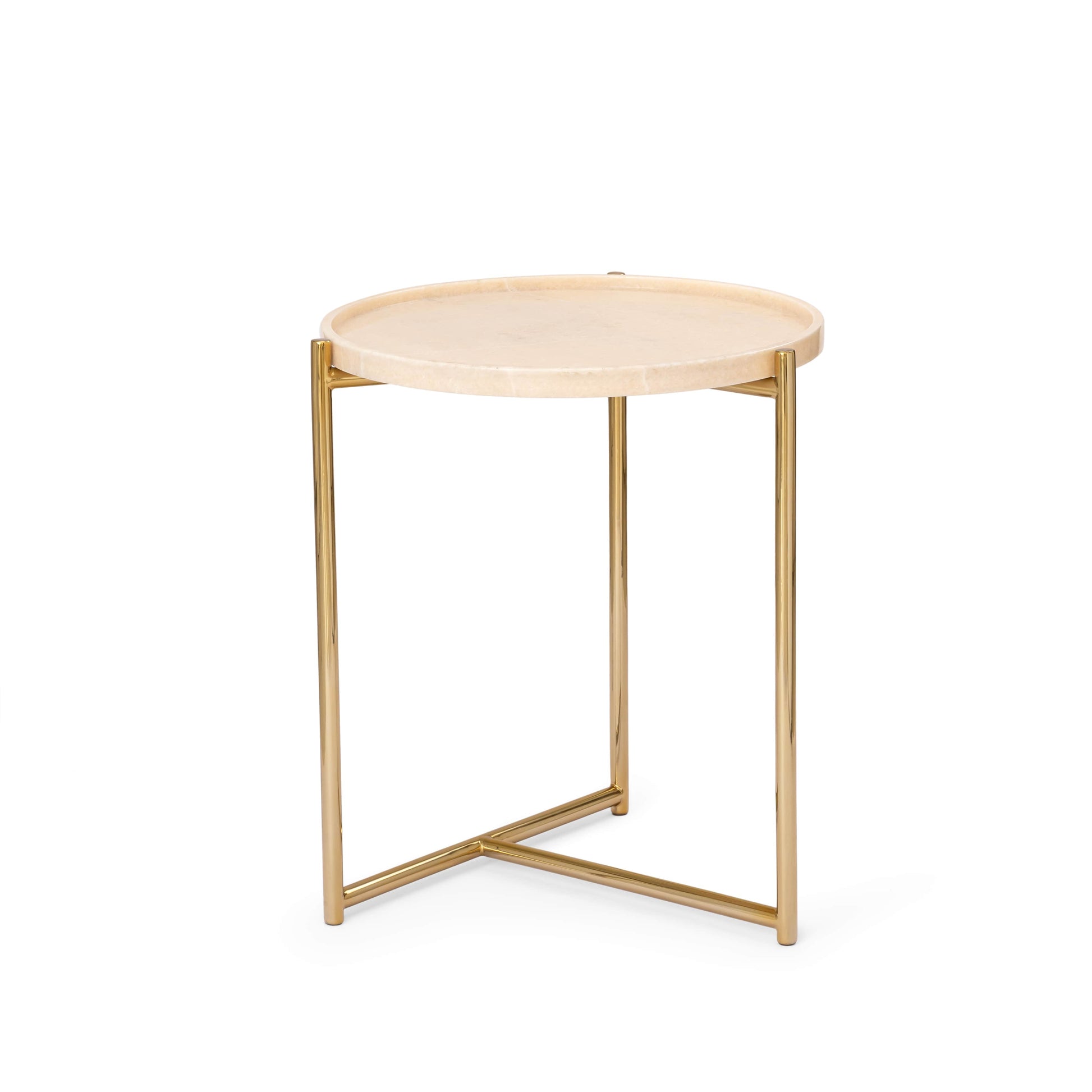 Our Tri-Metal Table offers a classic pairing of white marble and brass, a combination that never goes out of style. Its marble top and brass gold finish will stand proudly among other objects in any decor setting.