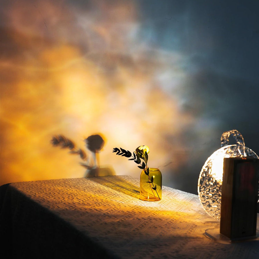 Elevate Your Ambiance Indulge in an enchanting atmosphere with our water-inspired projector. It casts mesmerizing water ripple-like light effects, transforming any room, bedroom, or home into a warm and romantic haven. adjust the brightness and hue to suit your preferences.
