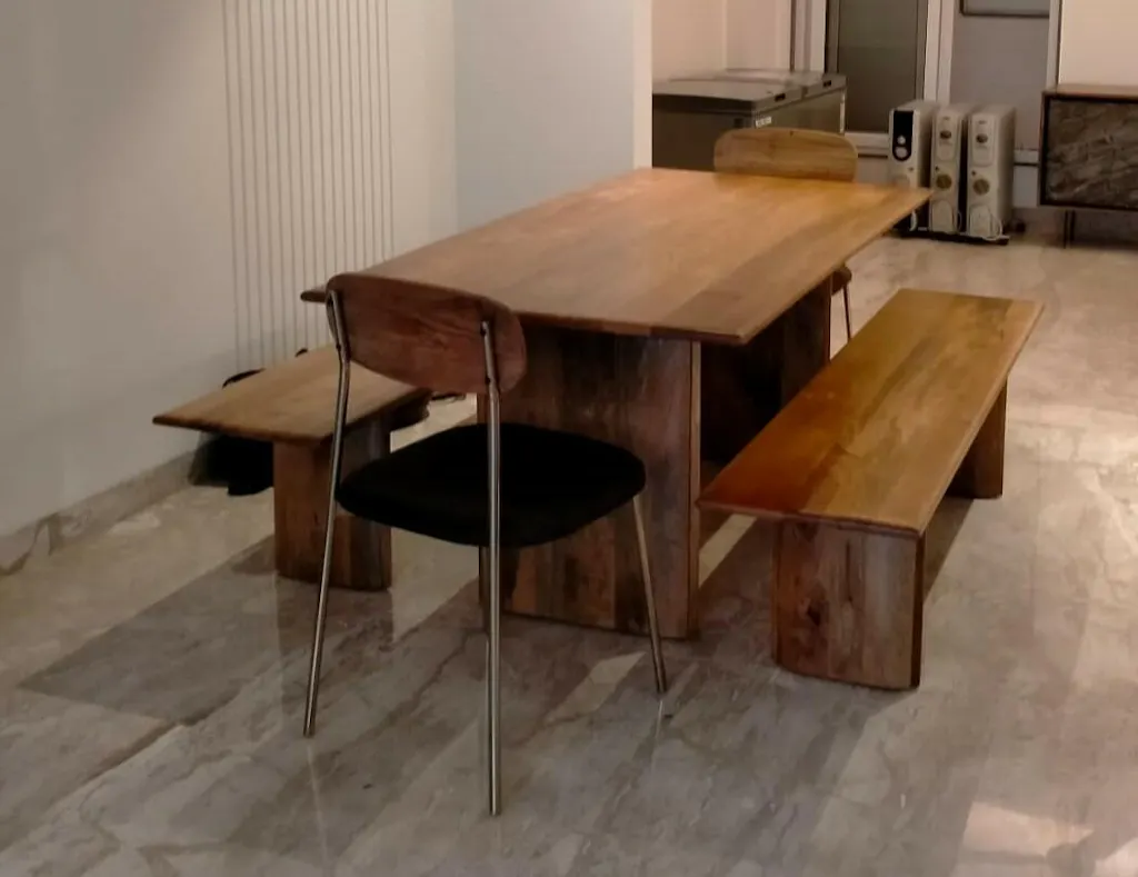 Wooden Dining Table With Benches For Dining Room & Home Furniture